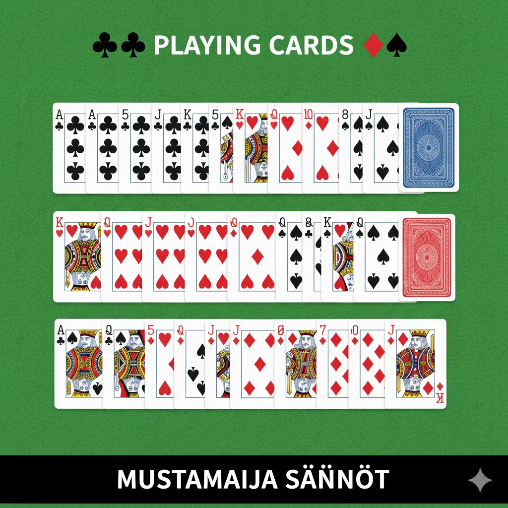 (Alt-teksti: mustamaija säännöt korttipeli pöydällä)