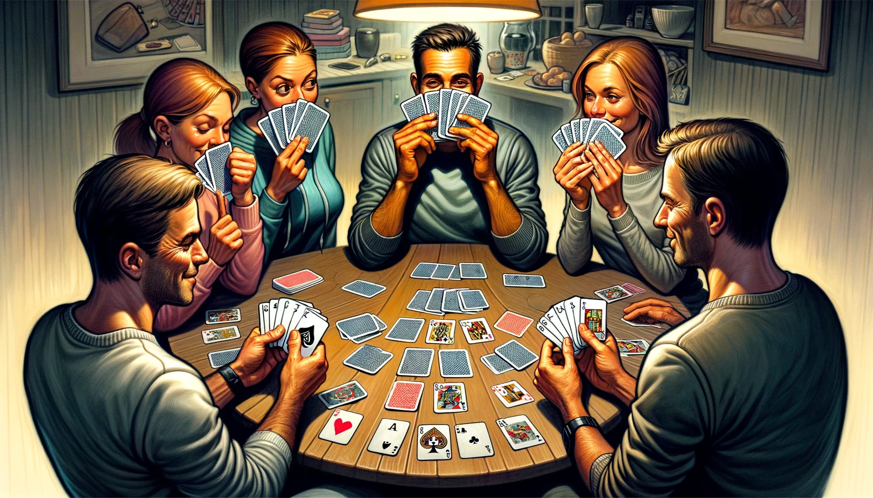 Paras strategia on sekoittaa bluffit ja rehelliset siirrot sekä seurata huolellisesti vastustajien korttimääriä.